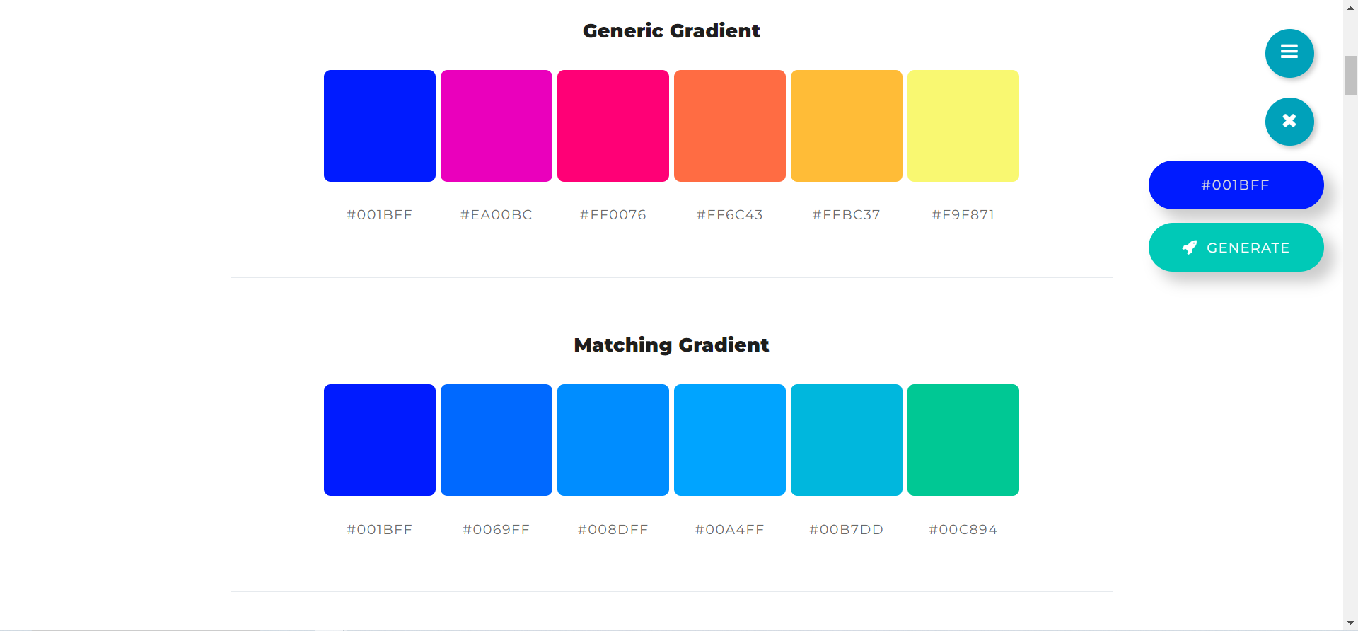 打开网站,界面极其简单。你只需选定一个你喜欢的基色(比如你想要图片的主色调是蓝色),点击“Generate”,网站瞬间就能为你生成几十种配色方案。包括双色渐变、三色渐变、以及适合做热图的连续调色板。你只需要把网站给出的色值复制到你的绘图软件或PPT中,原本略显廉价的图表,瞬间就有了“高级定制”的质感。